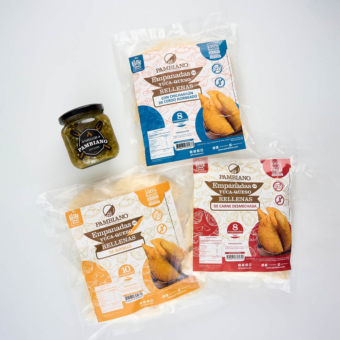 Empanadas artesanales en empaques individuales sellados al vacío.